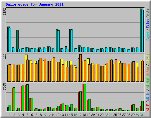 | Day | Hits | Files | Pages | Visits | Sites | kB F | kB In | kB Out | ||||||||