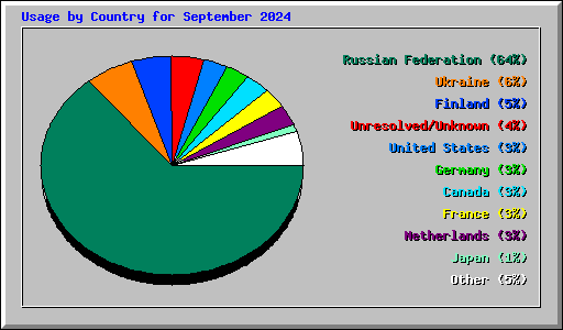 | 1 | 38766 | 67.63% | 5798057 | 98.84% | 13881 | 72.87% | 5810921 | 98.71% | /webalizer/usage_202409.html |